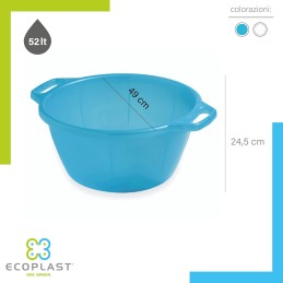 Ecoplast, Bagno Tondo, Cesto per Biancheria, Utile e Comodo, Resistente e Indeformabile, Dotato di Doppi Manici, 50 cm, 80% di Plastica Riciclata, Color Neutro, Made in Italy