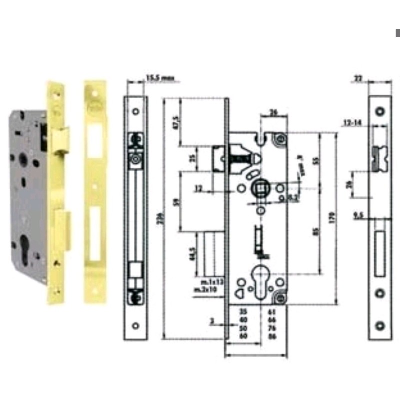 Tipo: serratura da infilare (mortise lock) per montaggio nel vano ricavato nella porta.