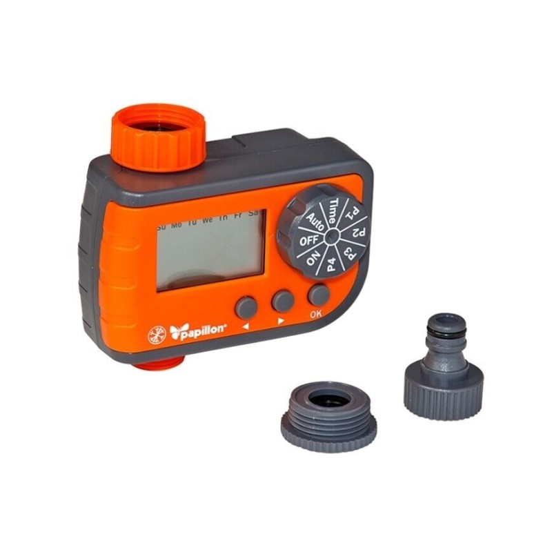 Il Programmatore Digitale Papillon è una soluzione avanzata per il controllo dell'irrigazione, progettata per automatizzare il sistema di irrigazione del giardino, dell'orto o del prato. Con 4 programmi settabili, è ideale per gestire le valvole solenoidi e garantire un'irrigazione efficiente e personalizzata. Il display digitale e le opzioni di programmazione flessibili rendono il dispositivo facile da usare e molto versatile.