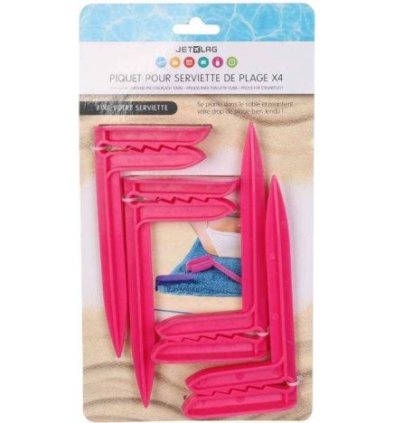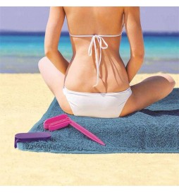Queste clip sono montate su paletti piantati nella sabbia, permettendoti così di tenere fermo il tuo telo mare! Super pratico per tenere fermo e teso il tuo asciugamano, soprattutto quando c'è vento! In plastica resistente Dimensioni: 15 cm x 7 cm