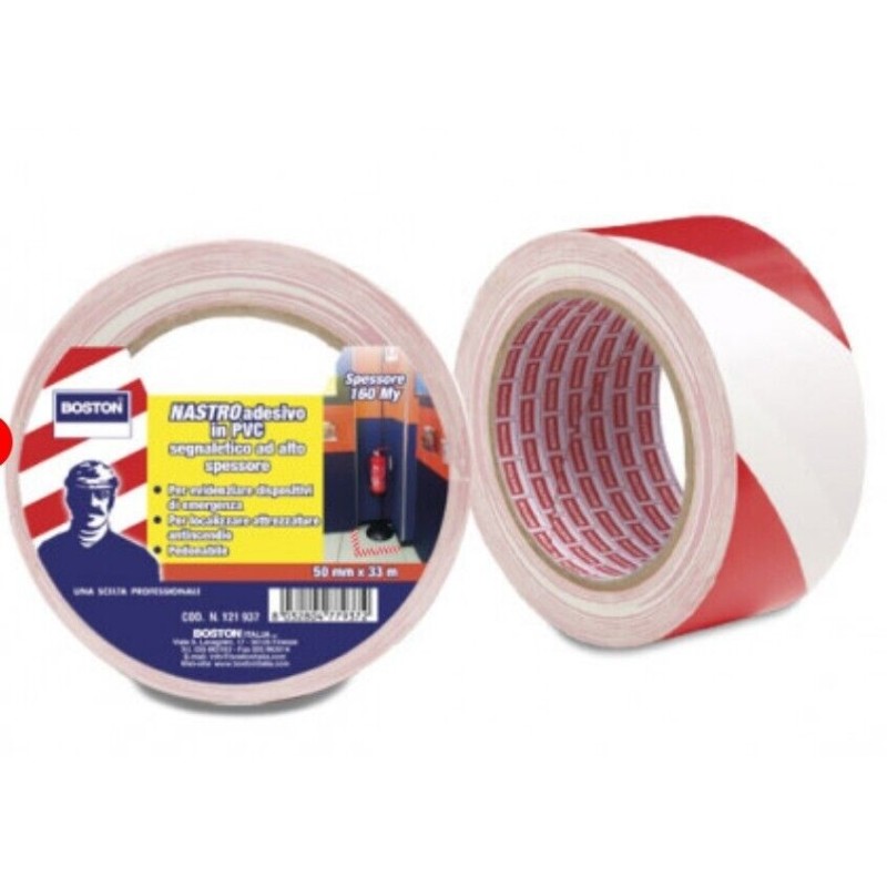 Nastro segnaletico adesivo in pvc bianco e rosso.