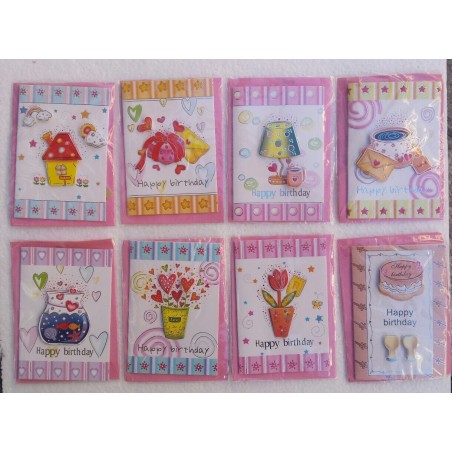 8 Biglietti biglietto auguri buon compleanno floreale assortiti colore rosa