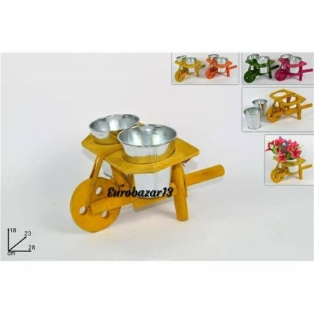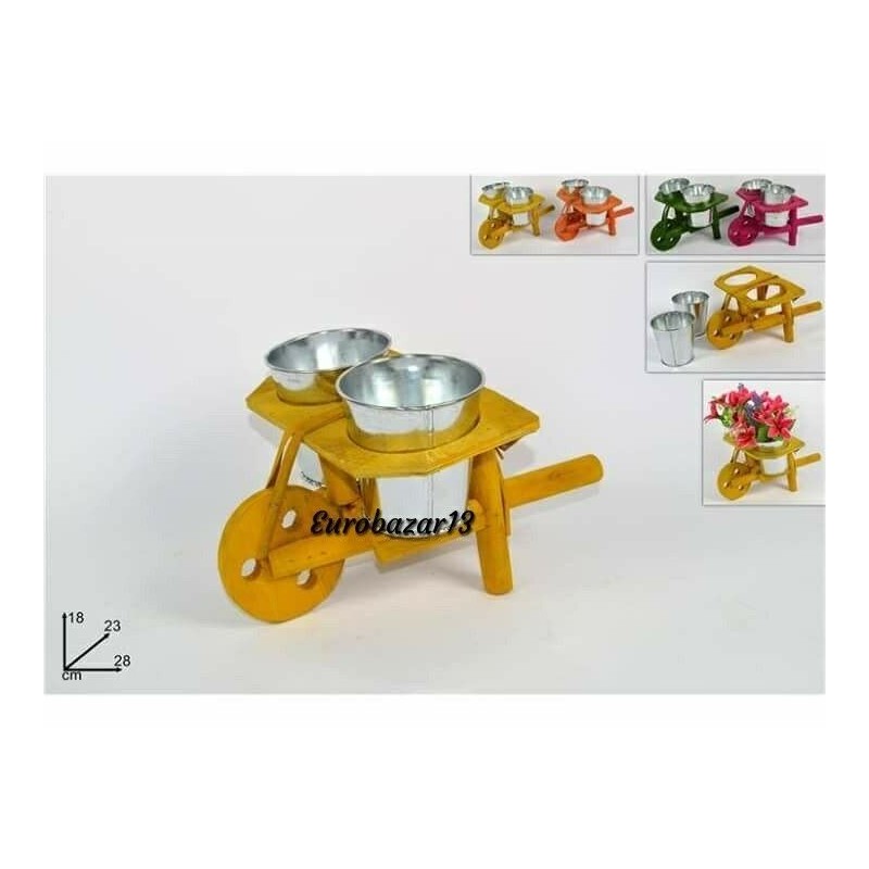 Portapiante carriola legno 2posti con vasetti metallo 6 colori