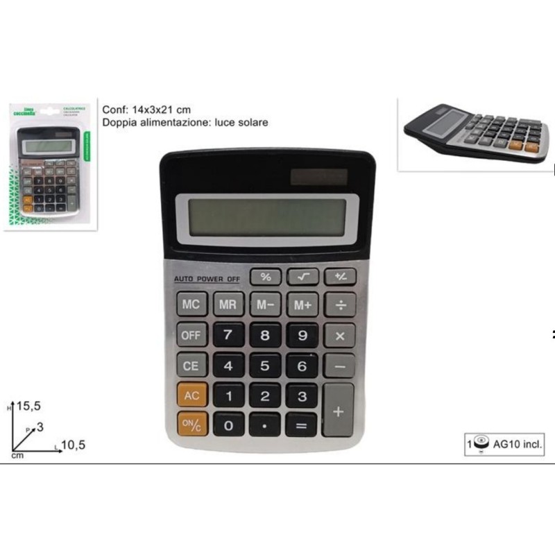 PROMO CALCOLATRICE 12 CIFRE A BATTERIA E CARICA SOLARE CASA SCUOLA UFFICIO.